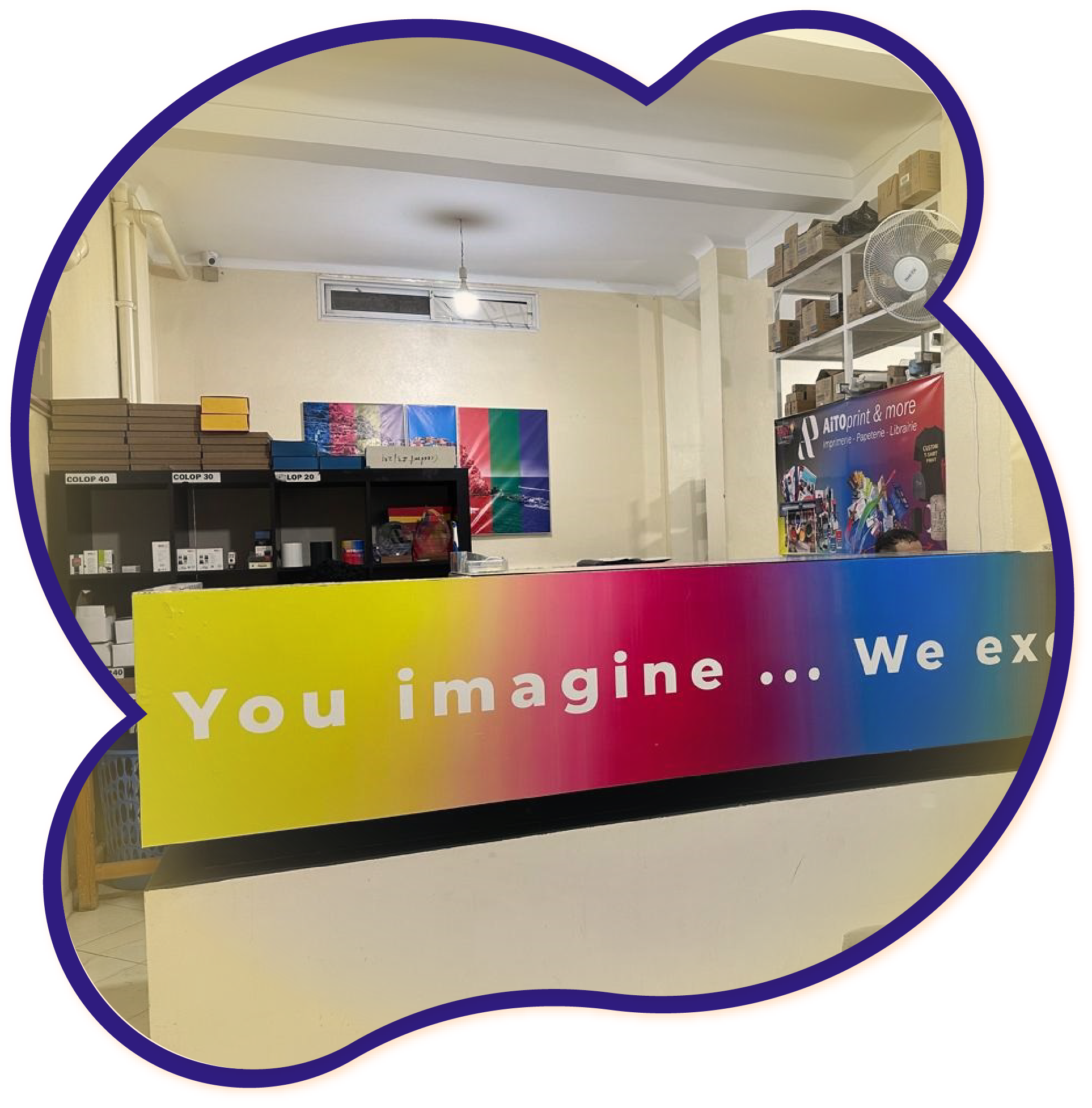 At Aitoprint and More, we understand that every project is unique. That’s why we work closely with you to understand your expectations and offer solutions tailored to your goals. We use advanced digital technologies to reproduce your files with exceptional precision on a wide range of materials: paper, cardboard, fabric, ceramic, acrylic, and much more. Whether you're a business, an agency, or an individual, we offer a fast and reliable service with extremely short production times. Order placed in the morning, ready for pickup in the evening! Trust us with your projects, and we’ll bring them to life with care, creativity, and professionalism to ensure results that exceed your expectations.